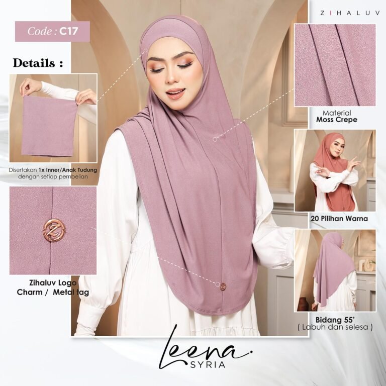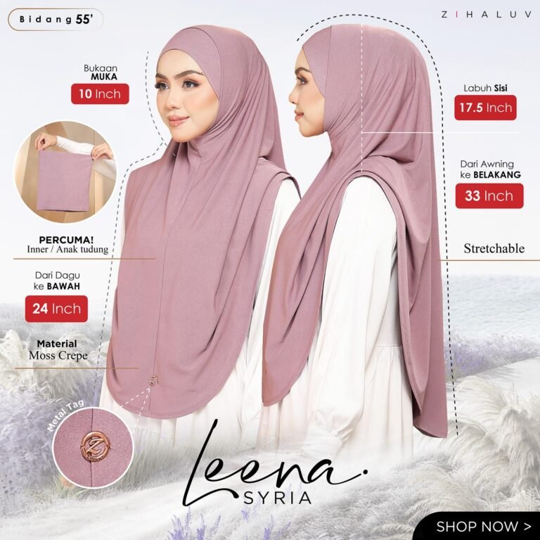 Tapi dengan Leena Syria Exclusive, anda akan kelihatan anggun walaupun bertudung labuh! Kualiti kain premium dan jahitan rapi memastikan penampilan kekal cantik sepanjang hari.